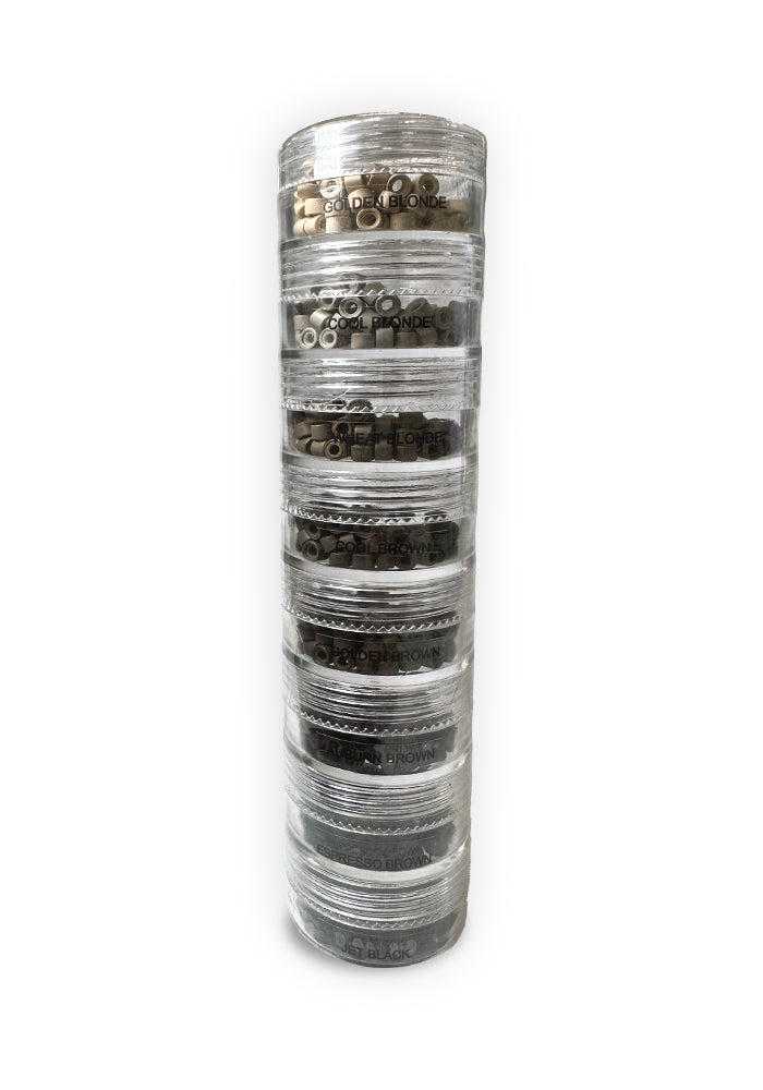 Designed for a flawless Infinity Weft, Flex Weft and Volume Weft sew-in installation, our new and improved thicker and more malleable aluminum withstands more move-up services than ever. These aluminum beads are lined with color matched silicone to provide an extra cushion to protect natural hair during extension services while seamlessly blending into the bead, extension, and guest’s root color.