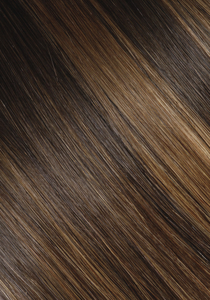 BELLAMI Professional Silk Seam™ | 360g 26" Mochachino Chocolate/Dark Honey Rooted Highlight Hair Extensions