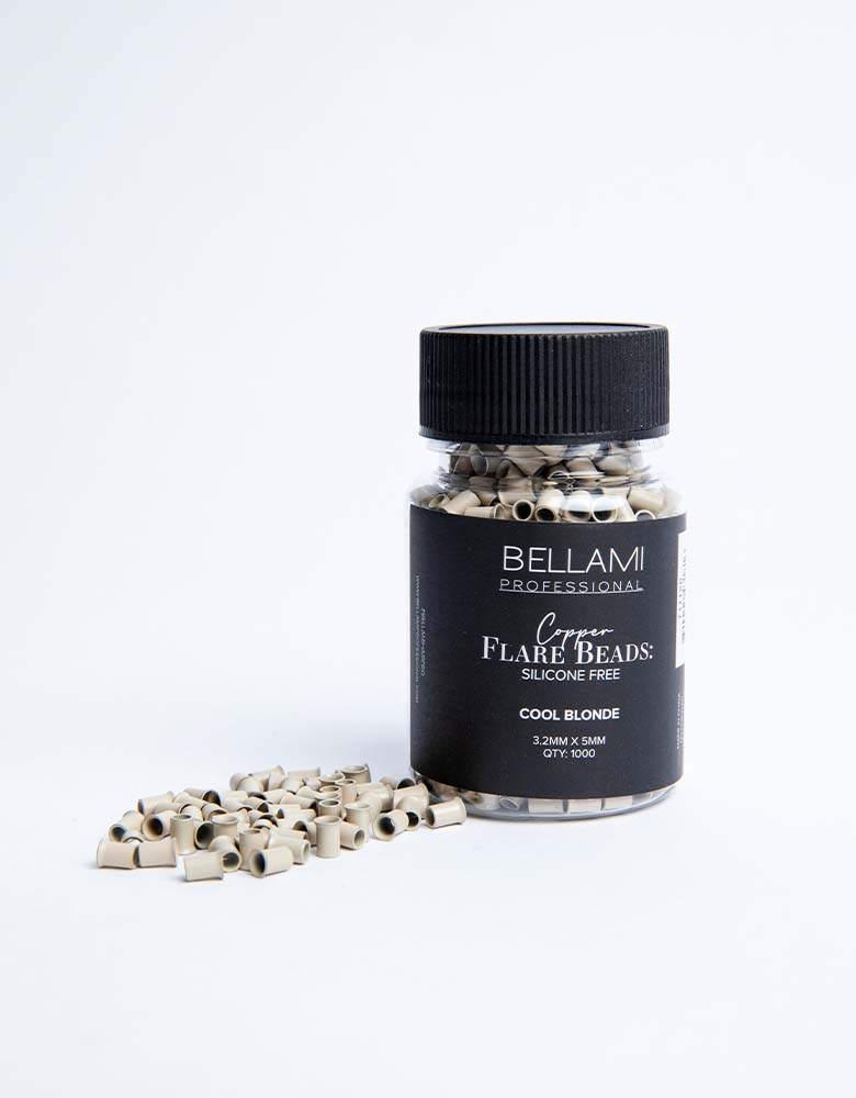 BELLAMI Pro Extension Silicone-Free Copper Flare Beads come in a single color and size with 1,000 pieces per jar.